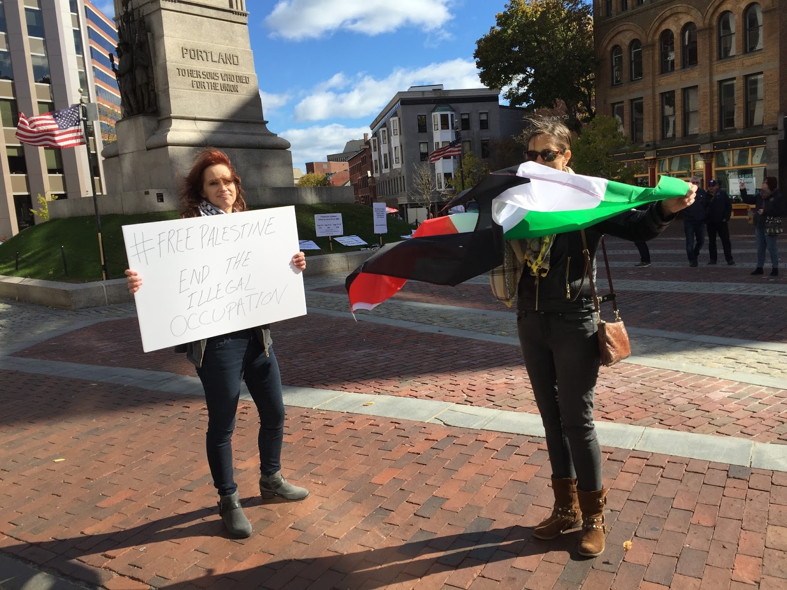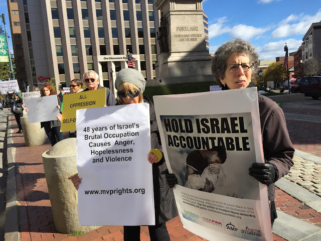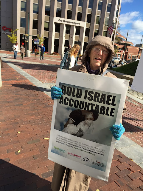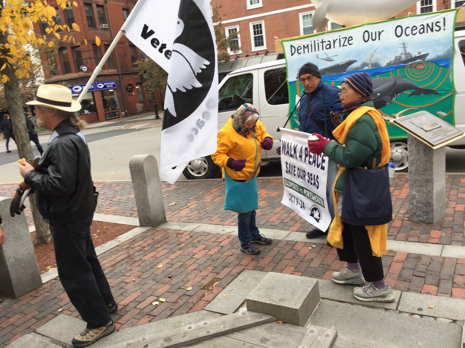 I was delighted to have a day to join the Maine Peace Walk: Militarization of the Seas on Saturday October 24, 2015. A high energy opening circle kicked off the final day of the walk which began two weeks prior in Ellsworth, Maine. Jun-san's joyful dancing and her leadership along with other members of the Nipponzan order of Buddhists was much appreciated. And everyone enjoyed the tunes offered by the Leftist Marching Band.